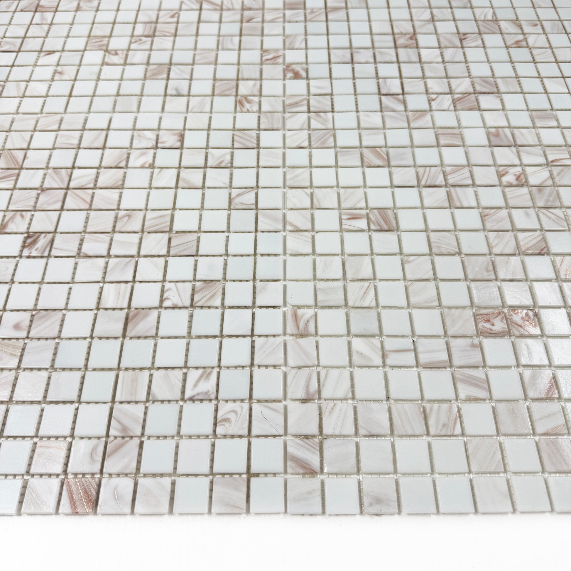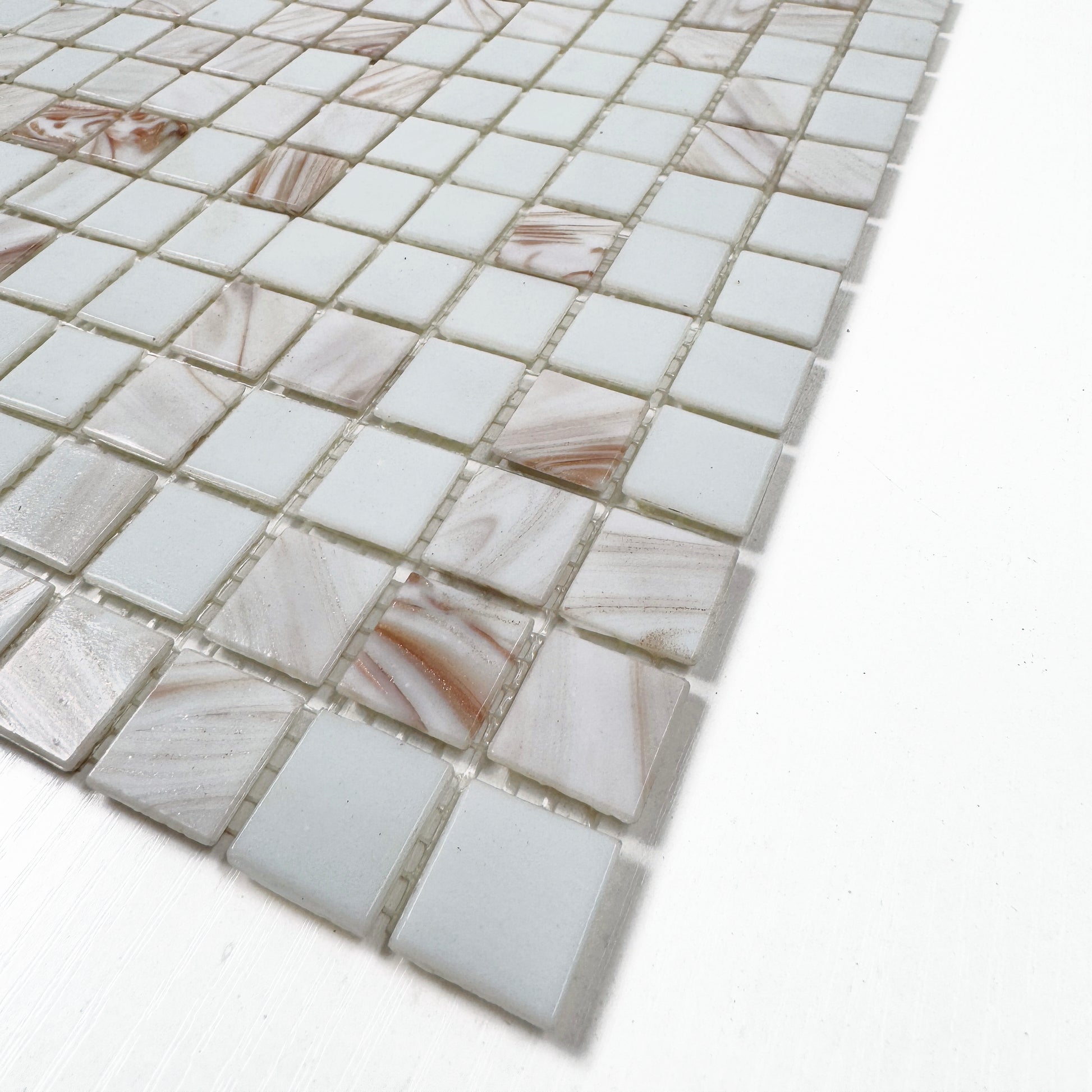 Glacial Artistry Series White With Gold Line Hot Melt Glass Mosaic